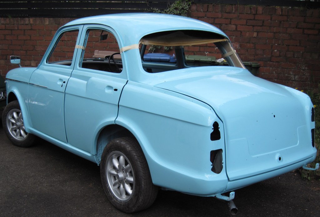 Fortunately we had a good friend who was a car restorer so Riley Blue went into his body shop for disassembly, rectification, paint and rebuild. It took a long while but we were chuffed to bits with the result. Gael chose the colour, blue naturally, but a more vivid shade than the original BMC Bermuda Blue – this blue…