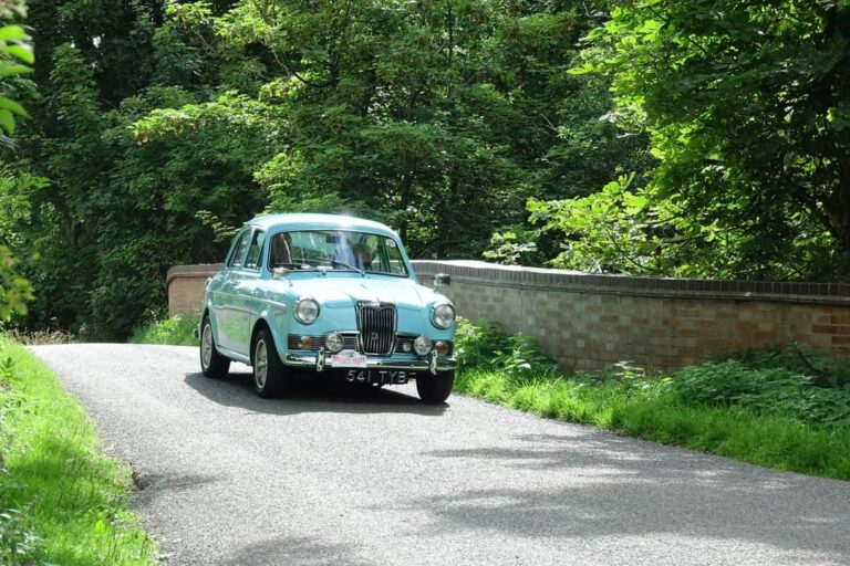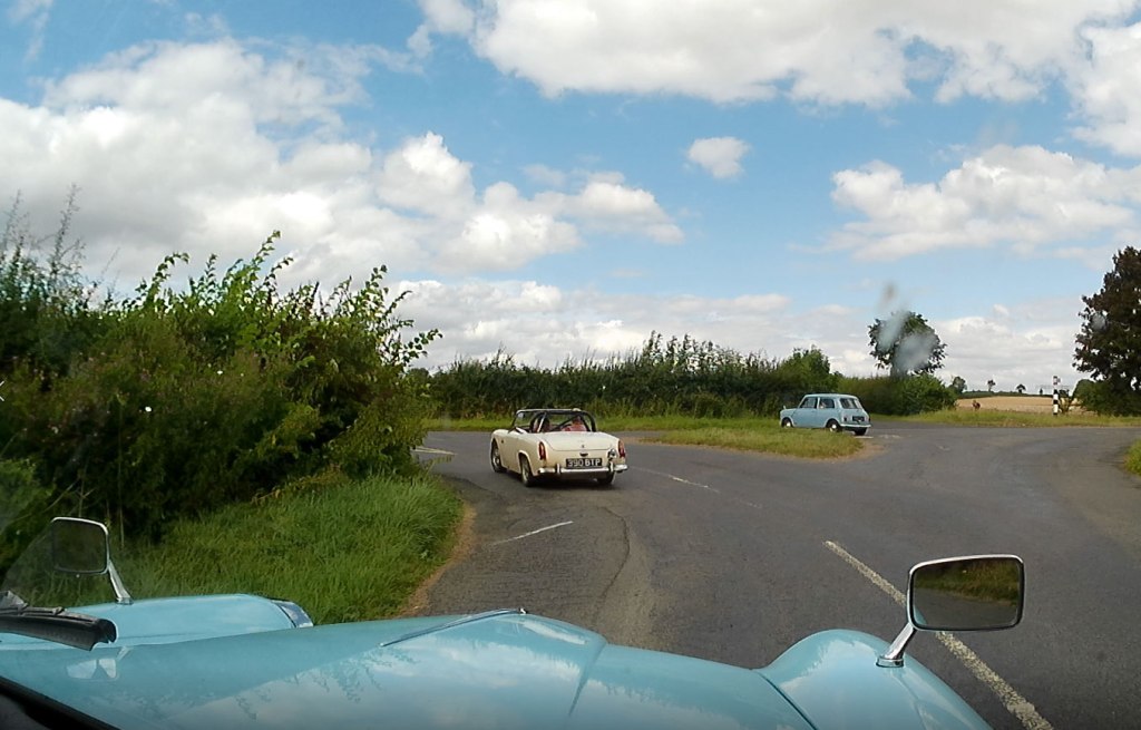Our route continued through high-hedged lanes too narrow or too twisting to slip past the Midget and we joined the A427 through Oundle, an attractive market town with its biscuit-coloured limestone buildings reminding us of the Cotswolds. On through Cotterstock and the pair of us caught up with a blue Mini…