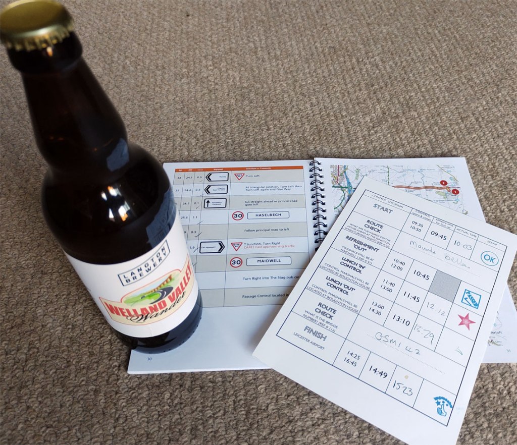 Horninghold, Hallaton, Cranoe and Glooston followed in quick succession. We were still behind the Frogeye and we’d both caught another car but with the finish fast approaching we were happy to sit there and soon swung right into the Leicester Airport car park to be greeted and presented with our ‘prize’, a commemorative bottle of Welland Valley Wander beer. Tea, cake, banter with other crews followed. It had been a great day, one we especially enjoyed as we’d been able to explore a new and rather attractive part of the Midlands.